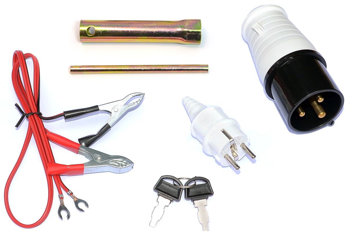 руководство, гарантийный талон, АКБ, соединительный комплект, колеса, ручки