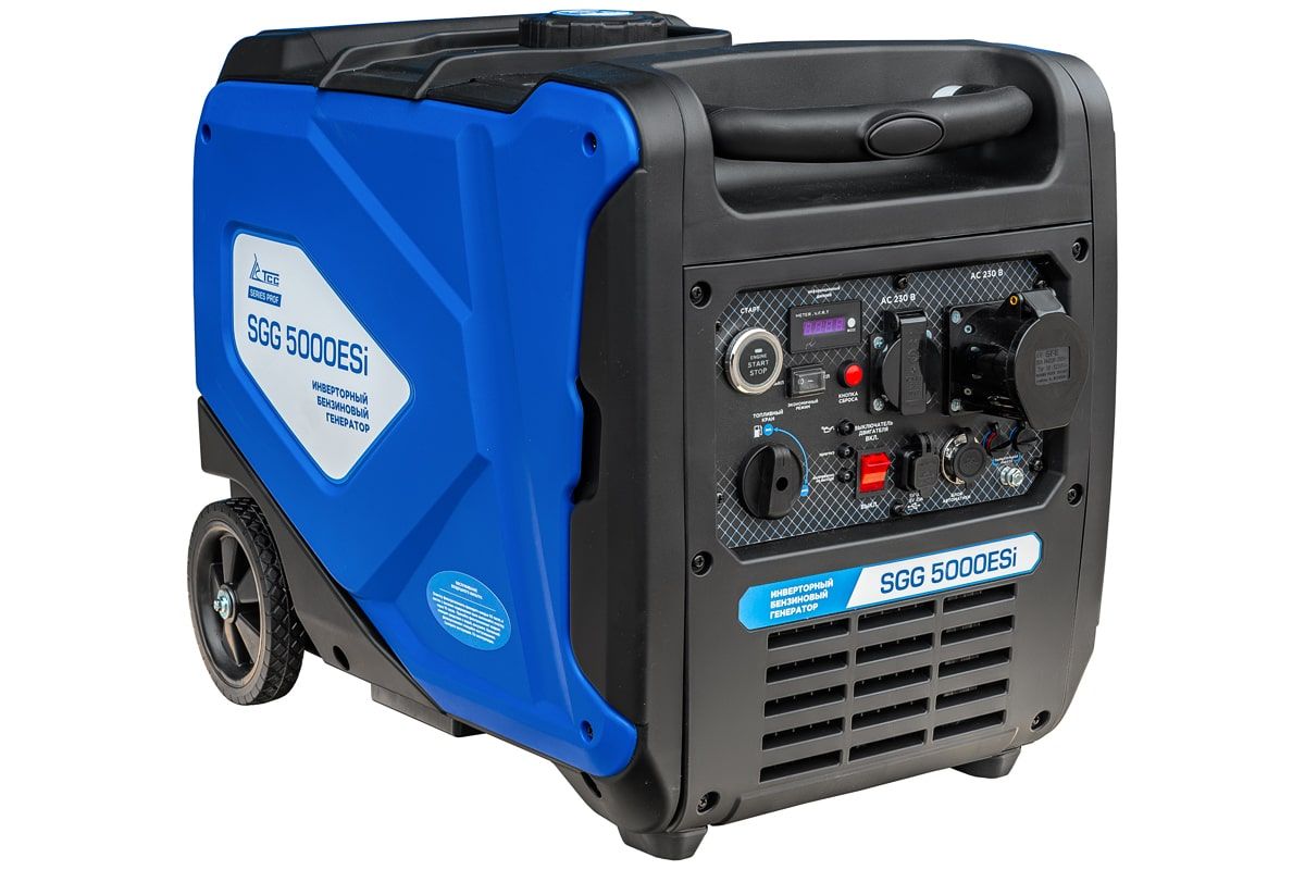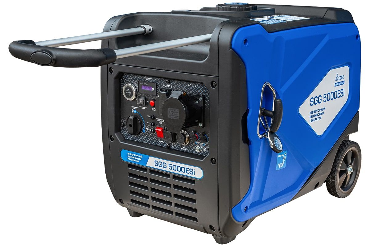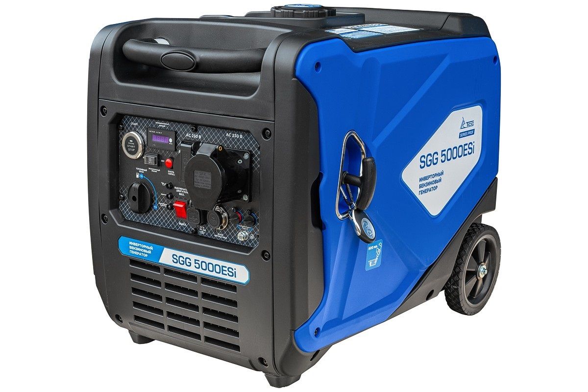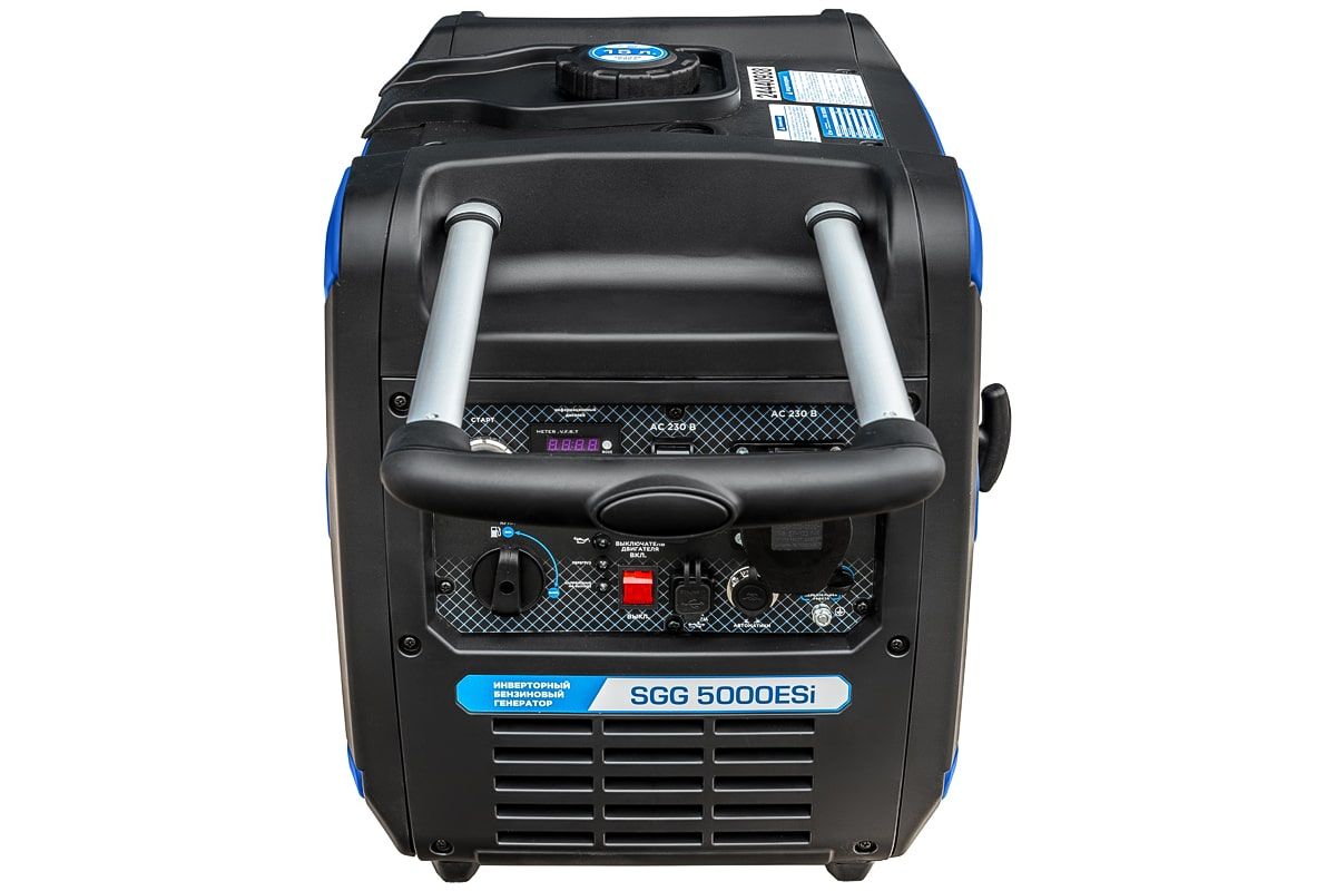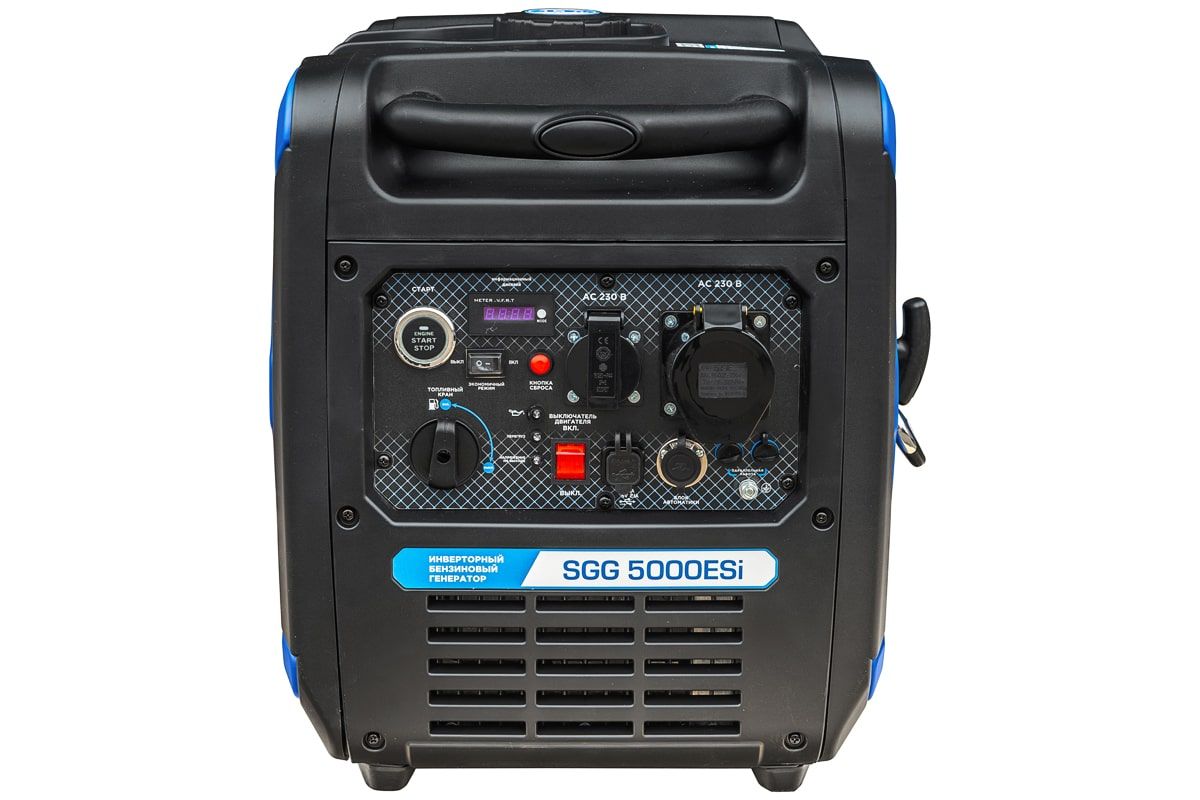 Бензогенератор инверторный SGG 5000ESi в шумопоглащающем кожухe, с электростартом, режимом экономичного расхода топлива - предназначен для подключения к нему потребителей тока общей максимальной мощностью до 5,5 кВт. Переносной компактный инверторный генератор предназначен для питания электроприборов на загородном участке, в походе, на рыбалке.