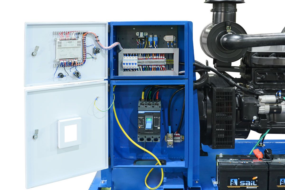Защита электрических цепей от перегрузки и короткого замыкания также осуществляется автоматически. Основой системы автоматики генераторной установки является цифровой контроллер, где на дисплее отображается основная информация о работе ДГУ.