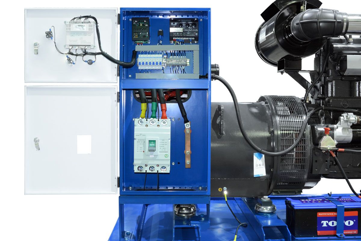 Защита электрических цепей от перегрузки и короткого замыкания также осуществляется автоматически. Основой системы автоматики генераторной установки является цифровой контроллер, где на дисплее отображается основная информация о работе ДГУ.